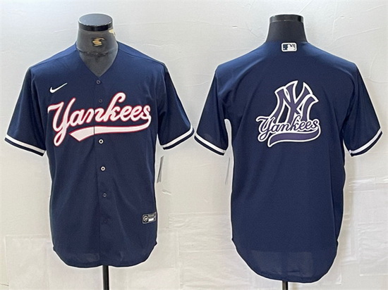 - Men New York Yankees Big LOGO Navy Cool Base Stitched Baseball Jersey 25