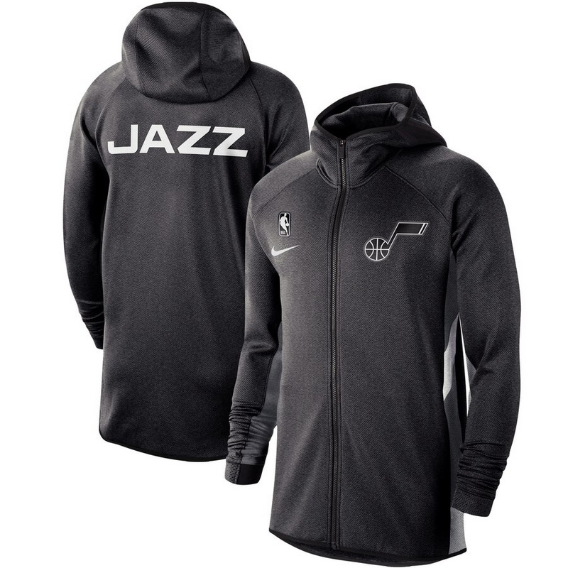 - Men Nike Utah Jazz Heathered Charcoal Authentic Showtime Performance Full Zip Hoodie Jacket