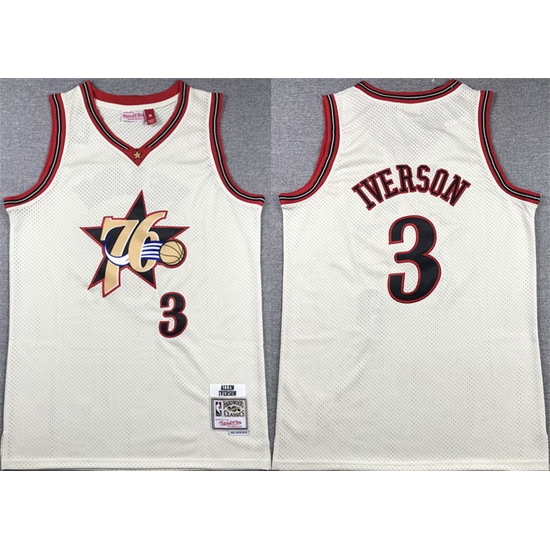 - Men Philadelphia 76ers 3 Allen Iverson White Cool Base Stitched Baseball Jersey 3