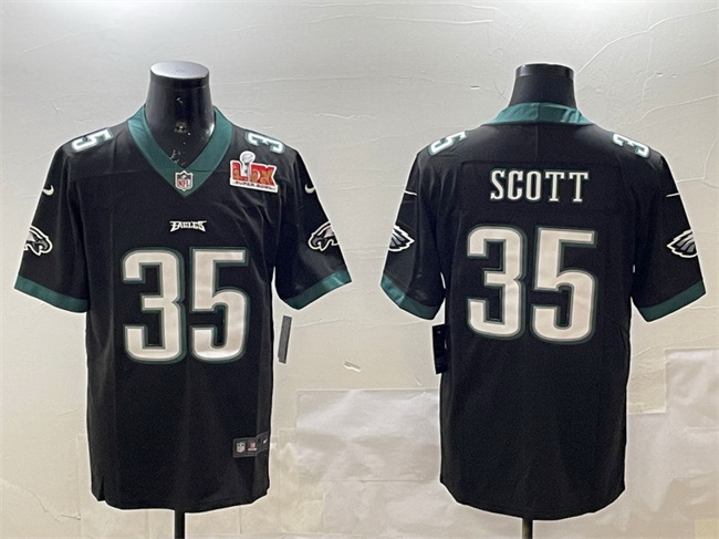Men Philadelphia Eagles 35 Boston Scott Black 2025 Super Bowl LIX Patch Vapor Untouchable Limited Stitched Football Jersey
