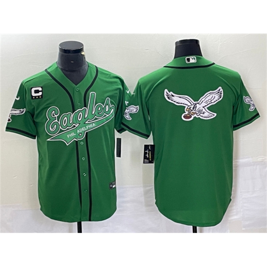 - Men Philadelphia Eagles Green Team Big Logo With C Patch Cool Base Stitched Baseball Jersey