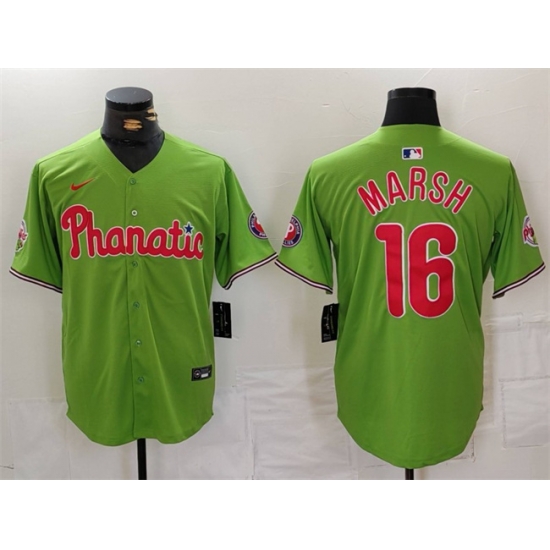 - Men Philadelphia Phillies 16 Brandon Marsh White Cool Base Stitched Baseball Jersey