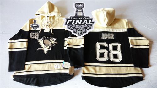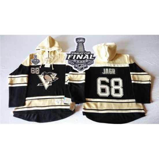 - Men Pittsburgh Penguins 68 Jaromir Jagr Black Sawyer Hooded Sweatshirt Stitched NHL Jersey