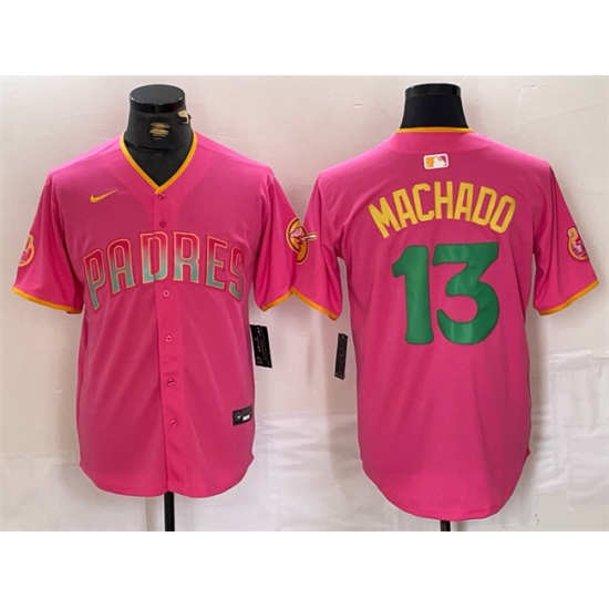 - Men San Diego Padres 13 Manny Machado Pink Cool Base Stitched Baseball Jersey 4