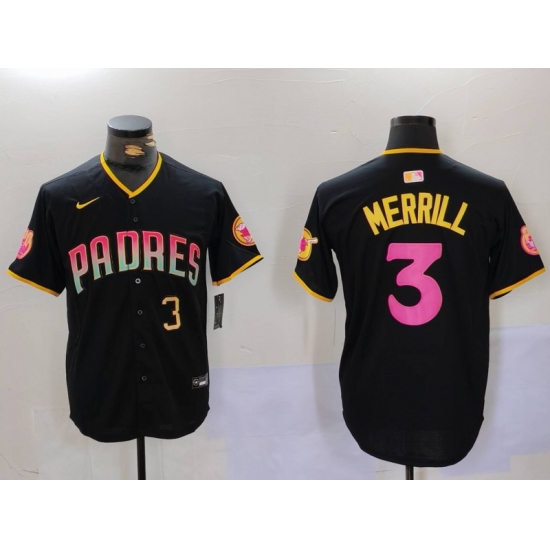 - Men San Diego Padres 3 Jackson Merrill Brown Cool Base Stitched Baseball Jersey 9