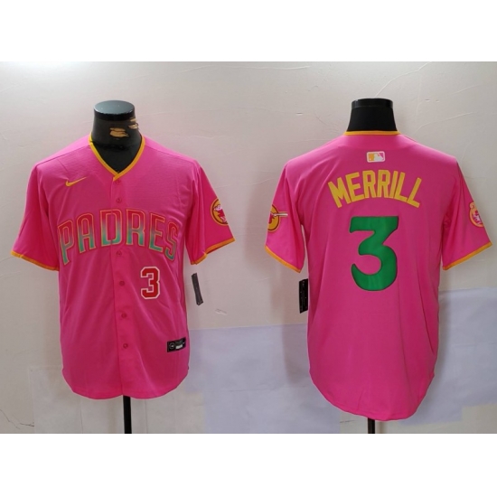 - Men San Diego Padres 3 Jackson Merrill Red Cool Base Stitched Baseball Jersey 8