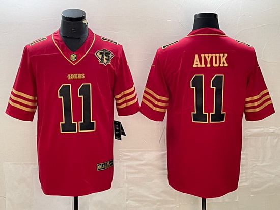 - Men San Francisco 49ers 11 Brandon Aiyuk Gold With Patch Cool Base Stitched Baseball Jersey