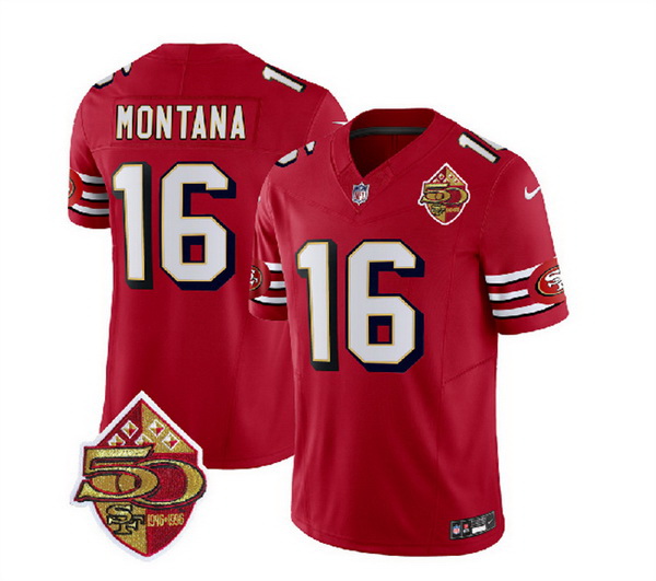 - Men San Francisco 49ers 16 Joe Montana New Red With Patch Cool Base Stitched Baseball Jersey