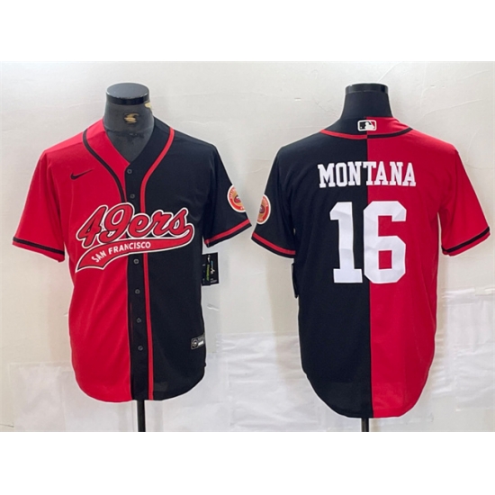 - Men San Francisco 49ers 16 Joe Montana Red Gold With 75th Anniversary Patch Stitched Jersey