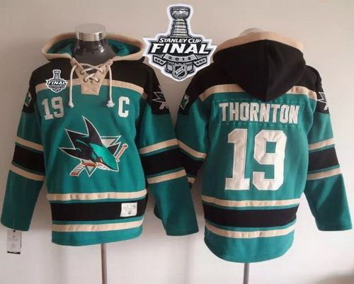 - Men San Jose Sharks 19 Joe Thornton Teal Sawyer Hooded Sweatshirt Stitched NHL Jersey
