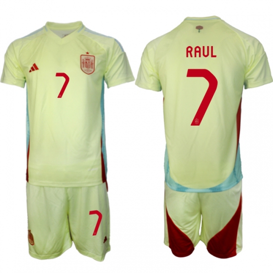- Men Spain Team 12 Joselu 2024 25 Yellow Away Soccer Jersey Suit