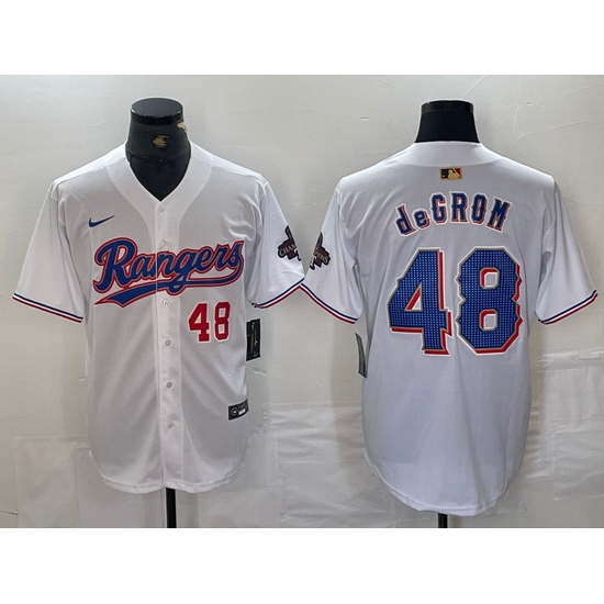 - Men Texas Rangers 48 Jacob DeGrom White Gold Cool Base Stitched Baseball Jersey 2