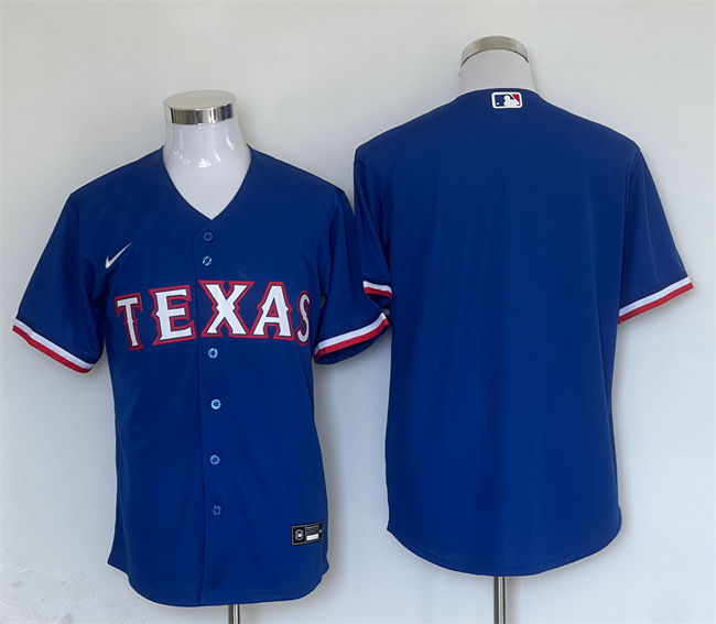 - Men Texas Rangers Blue Team Big Logo Cool Base Stitched Baseball Jersey