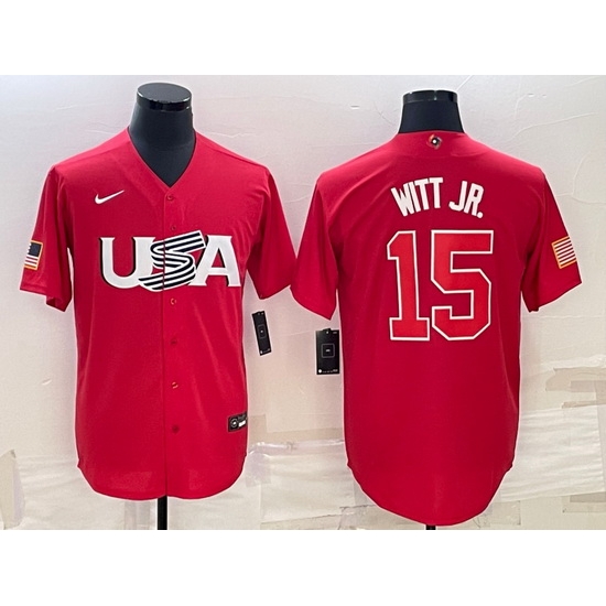 - Men USA Baseball #15 Bobby Witt Jr Number 2023 Red World Baseball Classic Stitched Jerseys