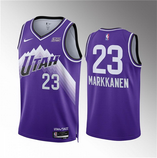 - Men Utah Jazz 23 Lauri Markkanen Purple 2023 Classic Edition Stitched Basketball Jersey