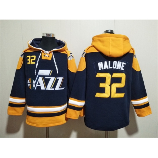 - Men Utah Jazz 32 Karl Malone Navy Yellow Lace Up Pullover Hoodie