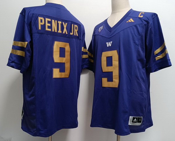 - Men Washington Huskies Michael Penix Jr. #9 Stitched Football Purple Gold Jersey