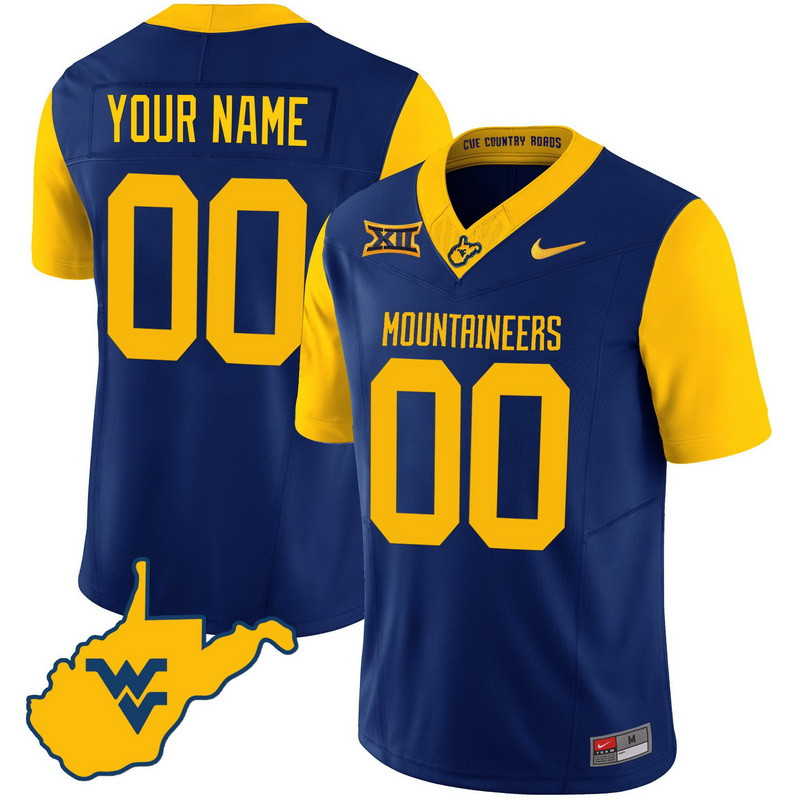 Men Women Youth West Virginia Mountaineers 2024 Country Roads Custom Jersey All Stitched Navy