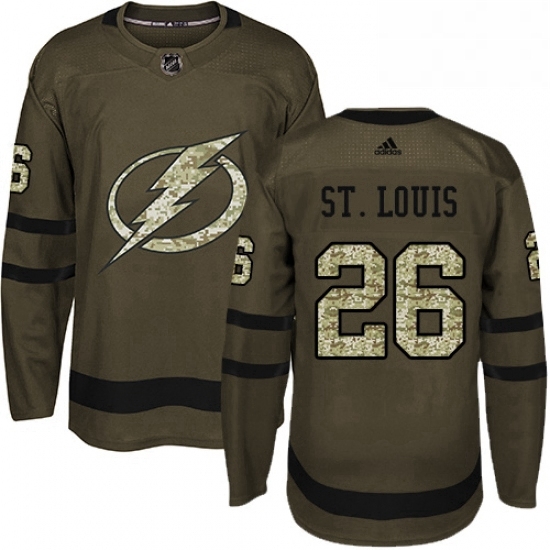 - Mens Adidas Tampa Bay Lightning 70 Louis Domingue Authentic Green Salute to Service NHL Jerse