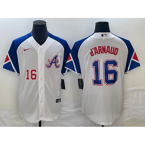 - Men Atlanta Braves 16 Travis D 27Arnaud White 2023 City Connect Flex Base Stitched Jersey