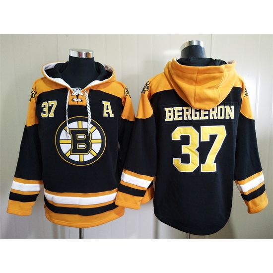 - Men Boston Bruins 37 Patrice Bergeron Black Name 26 Number Pullover NHL Hoodie