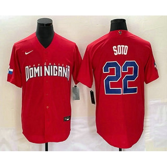 - Men's Dominican Republic Baseball #22 Juan Soto 2023 Red World Classic Stitched Jerseys