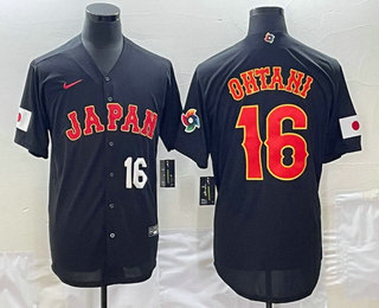 - Men Japan Baseball 16 Shohei Ohtani 2023 Black World Baseball Classic Stitched JerseyS