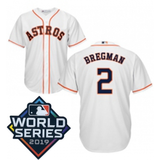 Home>MLB>2019 World Series>Astros Cool Base>Mens Majestic Houston Astros 2 Alex Bregman Replica White Home Cool Base Sitched 2019 World Series Patch Jersey