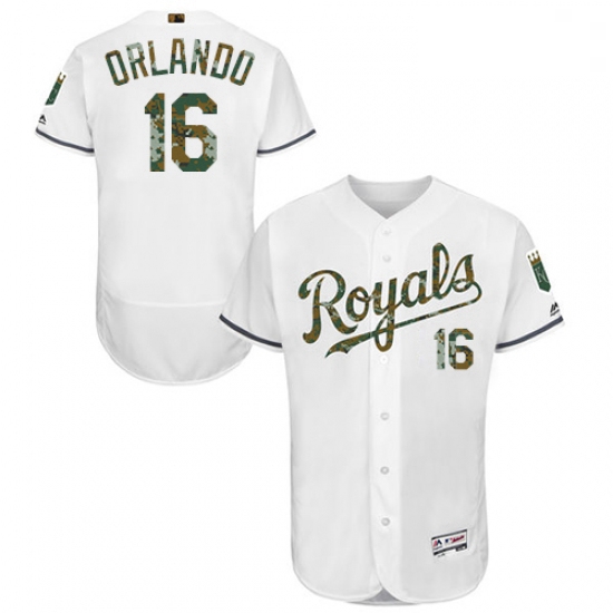 - Mens Majestic Kansas City Royals 16 Paulo Orlando Replica Green Salute to Service MLB Jersey