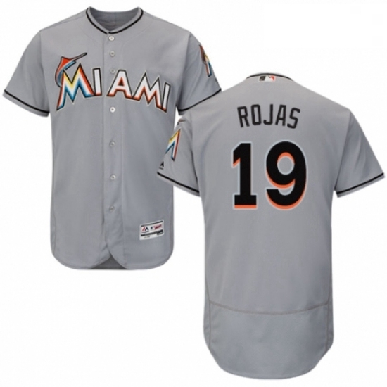 - Mens Majestic Miami Marlins 19 Miguel Rojas Replica Black Alternate 2 Cool Base MLB Jersey