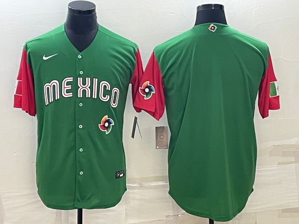 - Men Mexico Baseball Blank 2023 Green World Baseball With Patch Classic Stitched Jersey