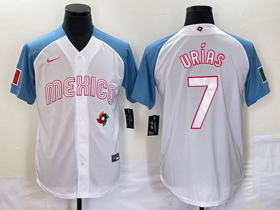 - Women's Mexico Baseball #7 Julio Urias Number 2023 Green World Classic Stitched Jersey1