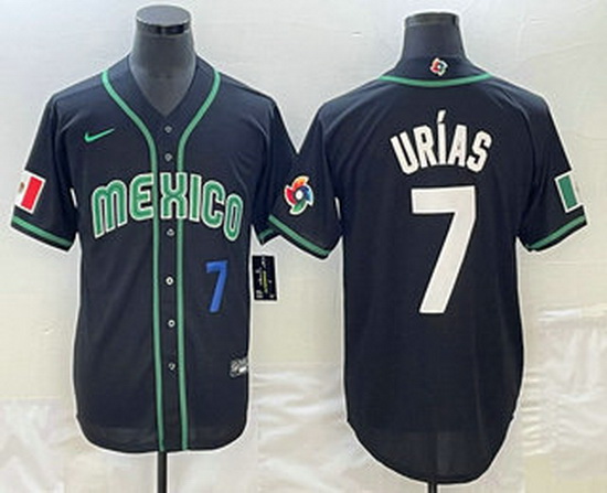 - Men's Mexico Baseball #7 Julio Urias Number 2023 Black White World Classic Stitched Jersey2