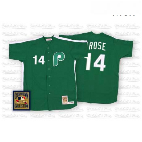 - Mens Mitchell and Ness Philadelphia Phillies 14 Pete Rose Authentic Green Throwback MLB Jersey