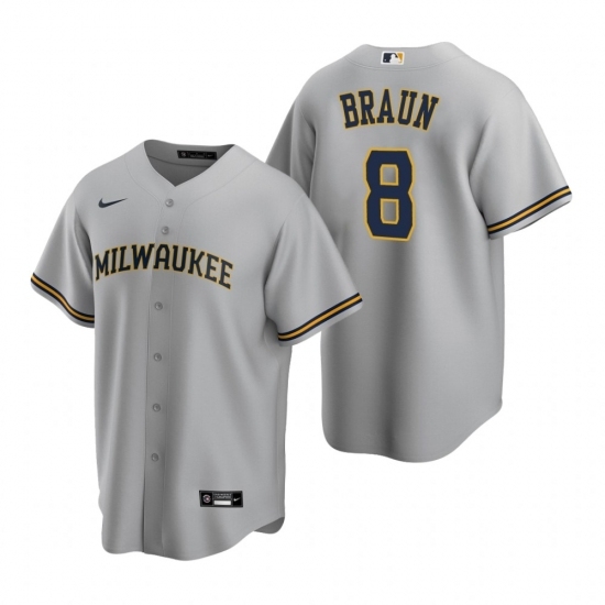 - Mens Nike Milwaukee Brewers 8 Ryan Braun Gray Road Stitched Baseball Jerse