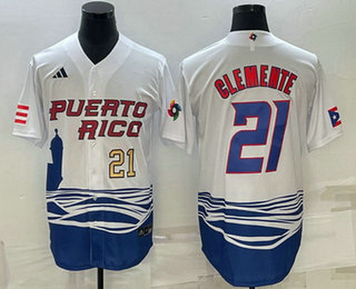 - Men's Puerto Rico Baseball #21 Roberto Clemente 2023 Red World Classic Stitched Jersey