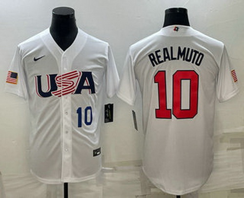 - Men's USA Baseball #10 JT Realmuto Number 2023 White World Baseball Classic Stitched Jersey