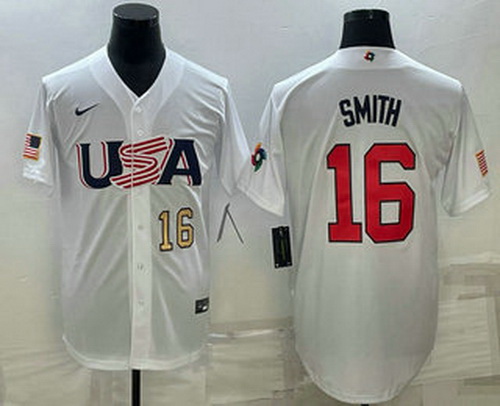 - Men USA Baseball #1 Jeff McNeil Number 2023 White World Classic Stitched Jersey 1