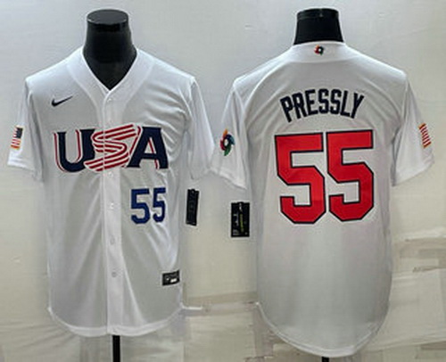 - Mens USA Baseball #55 Ryan Pressly Number 2023 White World Baseball Classic Stitched Jersey