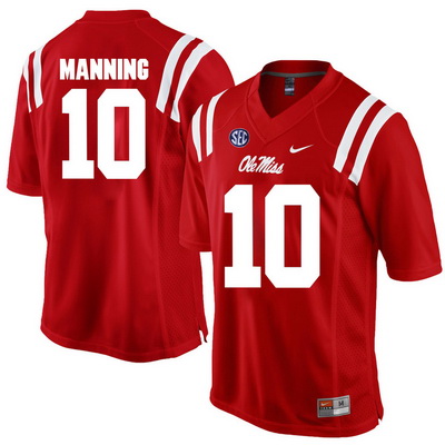 - Rebels #10 Eli Manning Red Embroidered NCAA Jersey