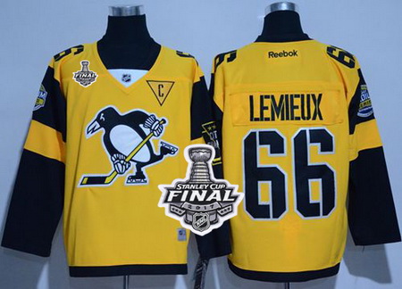 - Penguins #29 Andre Fleury Yellow Throwback 2017 Stanley Cup Finals Champions Stitched NHL Jersey