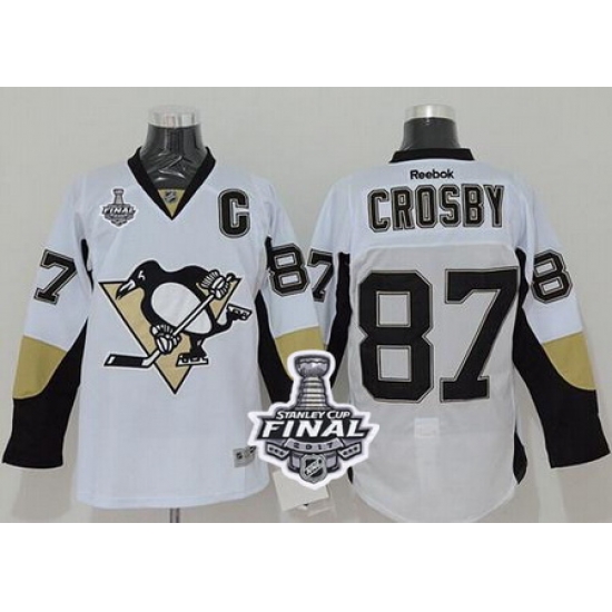 - Penguins #87 Sidney Crosby White CCM Throwback 2017 Stanley Cup Final Patch Stitched NHL Jersey