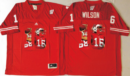 - Wisconsin Badgers 16 Russell Wilson White Portrait Number College Jersey