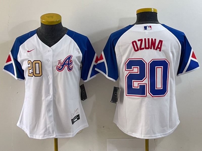 - Women Atlanta Braves 20 Marcell Ozuna White 2023 City Connect Stitched Baseball Jersey 3