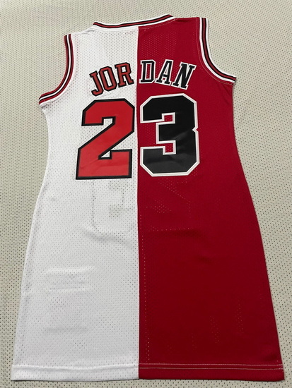 - Women Chicago Bulls 23 Michael Jordan Dress Stitched Jersey Red White Split II