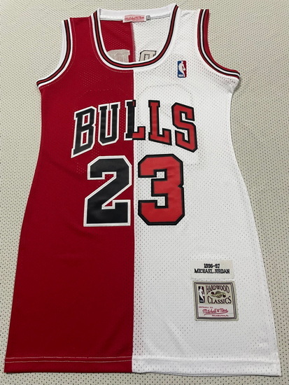 - Women Chicago Bulls 23 Michael Jordan Dress Stitched Jersey Red Black Split II