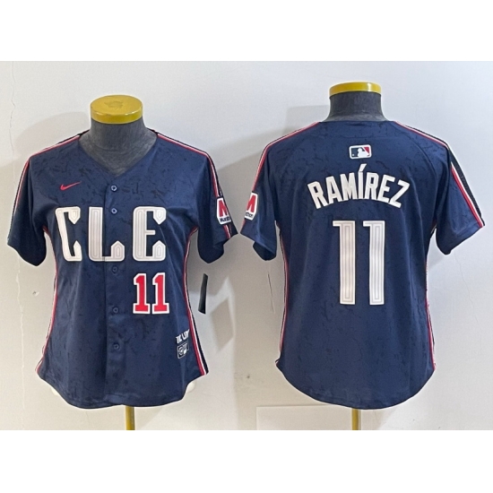 - Women Cleveland Guardians Team Big Logo Navy 2024 City Connect Stitched Baseball Jersey 3