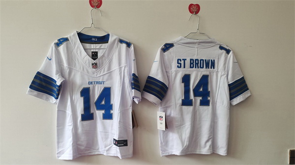 - Women Detroit Lions 14 Amon Ra St Brown White Stitched Jersey