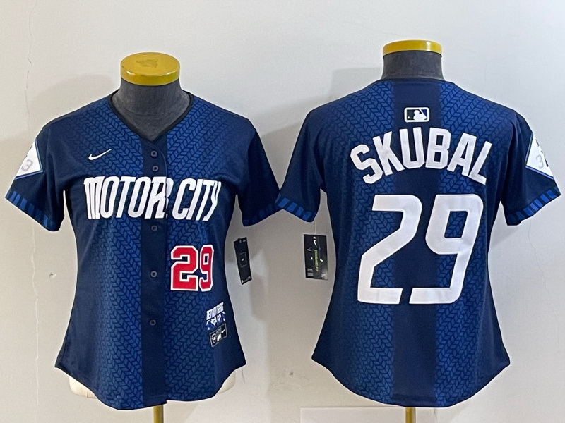 - Womens Majestic Detroit Tigers 17 Denny McLain Replica Navy Blue Alternate Cool Base MLB Jersey
