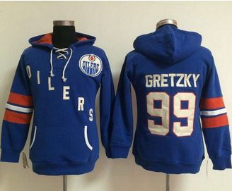 - Edmonton Oilers 99 Wayne Gretzky Light Blue Women Old Time Heidi NHL Hoodie